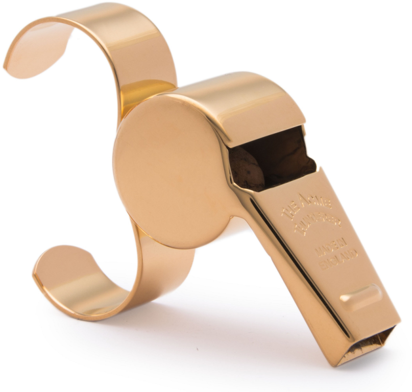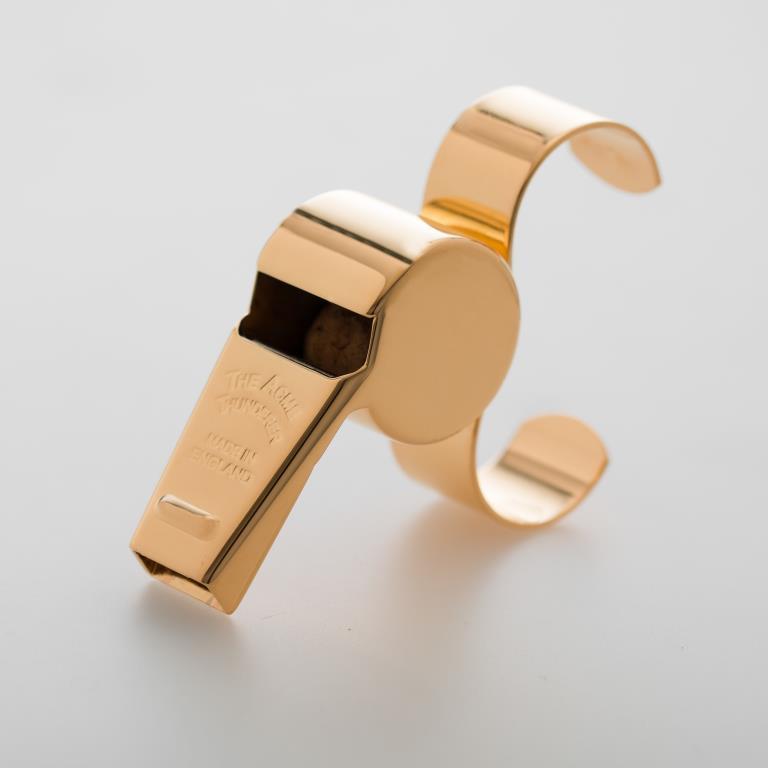 Acme 477/58.5 Gold Plated is a special edition of the famous nickle plated 477/58.5. The Speial edition comes in it own presentation box. Features are Hand polished, High power, Medium pitch 115dBA, Large chamber with Deep tone, Natural cork pea, Adjustable finger piece and Tapered mouthpiece. The 58.5 series are perfect for large sporting gounds and games where background noise is high.