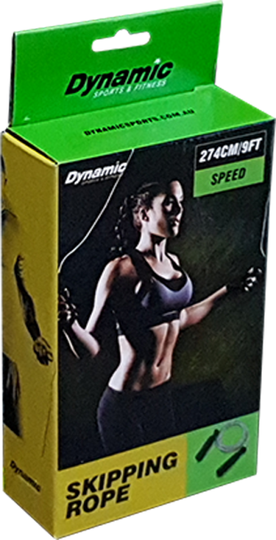 Dynamic speed skipping rope is a high performance rope designed for advance skipping. The PVC coated wire cable will travel at higher speed and maintain a good jumping shape even in wind affected areas. The handles are foam coated for comfort and the cable it attached with a ball bearing swivel.