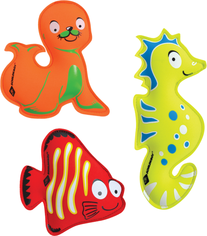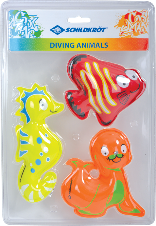 Schildkrot Fun sport diving animals are a great fun way for children to learn to dive. Animals are designed in bright colours for visibility and are also weight to stand in the upright position for easy pick up. Set includes one fish, 1 sea lion and one seahorse.