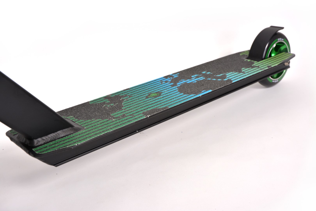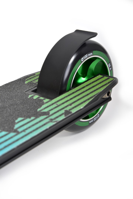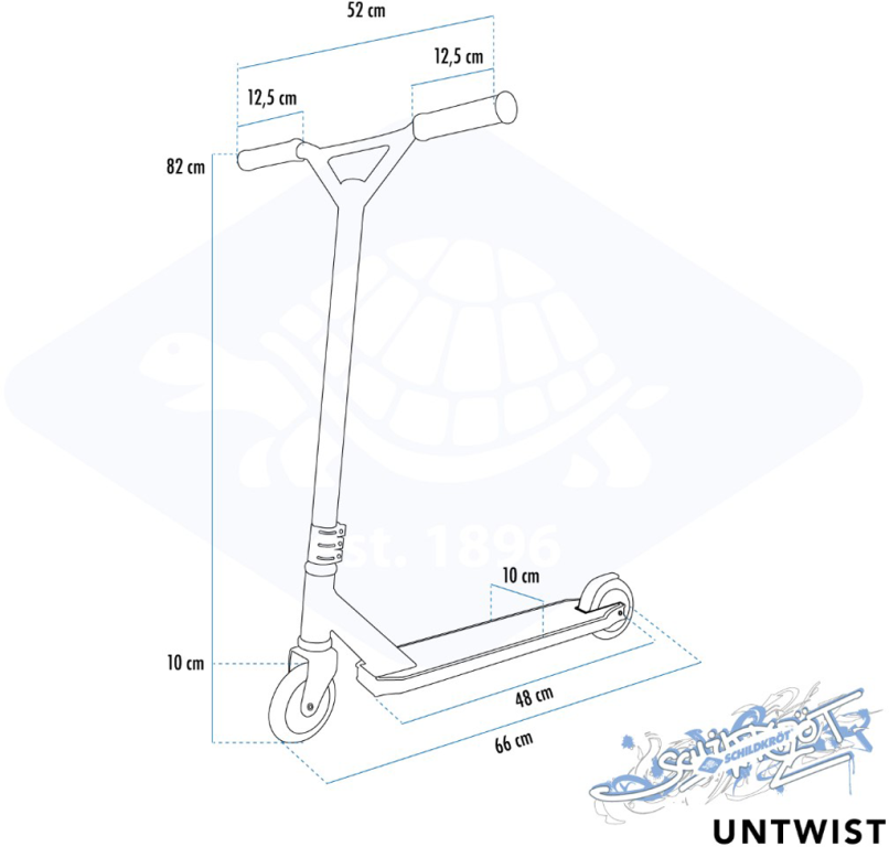 The new "Untwist" stunt scooter from the traditional house Funsport impresses with its really great features and a fair price. The Untwist allows you to get used to the first tricks and stunts and even more demanding stunts later. Due to the deck of hardened, high quality 6061-aluminum in box construction the scooter is very torsion-resistant and robust.The trendy Graphic Griptapemakes the deck non-slip and ensures a stable and secure position for all tricks. The 52 cm wide and 82 cm high, reinforced handlebar is like the fork made of high quality, shatter proof steel. The steering tube and fork are connected with a three-socket screwdriver with three Allen screws. The high-quality and comfortable TPR handles always ensure a secure grip and good shock absorption. High quality NECO headset. Of course, the handlebar is 360 degrees rotatable for all tricks and stunts. The Untwist is factory-equipped with 100 mm wheels made of non-slip PU (hardness 88A), these wheels are mounted on aluminum rims, which can also take away coarse bumps and jumps easier. Smooth ABEC 7 bearings make the Untwist perfect. The Untwist comes pre-assembled in a box.