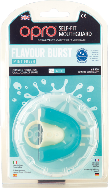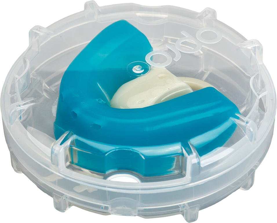 Opro Silver series is an professional level mouthguard in the OPRO Self-Fit range. It harnesses an inter-jaw absorption layer thanks to its two layer construction. This provides additional shock absorption between the upper and lower jaw. The OPRO Silver comes with an anti-microbial case, which means you can store your mouthguard safe in the knowledge that it’s protected against up to 99.99% of bacteria growth. Your Silver Mouthguard has 11 anatomical fins made from gel that have been placed in positions to mould to your teeth snuggly. When the mouth guard is dropped into hot water the fins soften so that it compresses them against your teeth and gums and creates a mouth guard unique to you. The three flex grooves help adapt to the mouth shape during the moulding process to help insure the best possible fit. Like the  Gold Mouthguard the Silver series comes with holes at the front and but not on either side where the cradle sits upon fitting. This ensures that you have a minimum amount of ultra-impact resistant material, which provides air cushions for added protection against blows or shots to the teeth and gums. Each Silver mouthguard comes with our very own fitting cradle that not only makes the fitting process swift and easy, but also means you have a minimum thickness left after moulding. This is key to protecting your teeth.