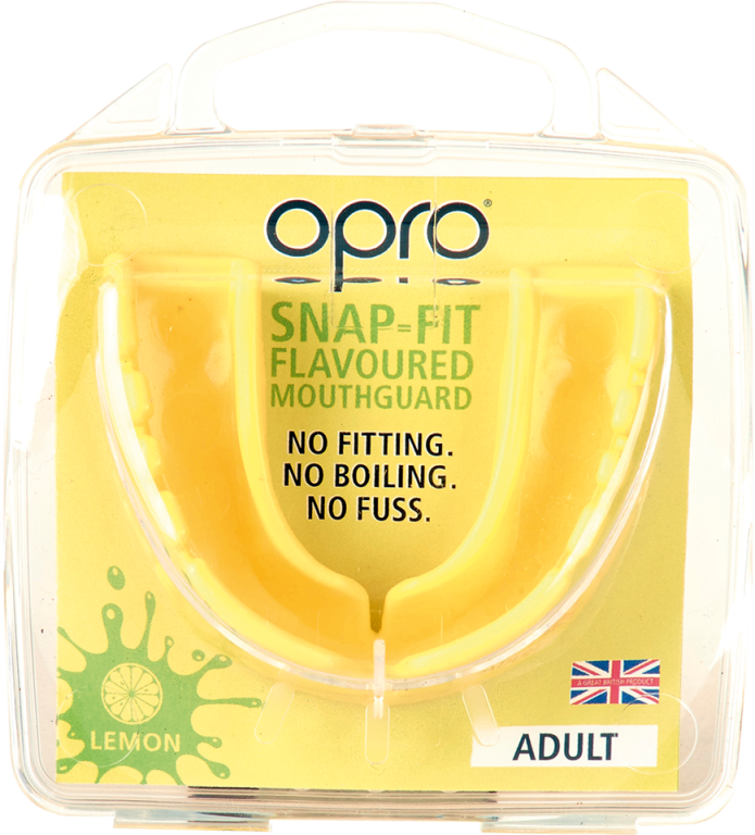 Opro Snap Fit series is an entry level mouthguard in the OPRO Self-Fit range. Snap Fit is single layer construction. OPRO Snap fit is designed to instantly snap over your teeth to create an instant and highly retentive fit. Designed for instant use the Snap Fit does not require fitting or Boiling. Snap Fit comes with its own case, which means you can store your mouthguard safely.