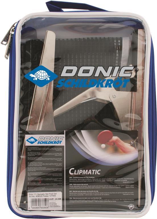 Schildkrot Clipmatic net and post set is designed for club use. Features heavy duty large mounting pads, High quality mesh net with pvc top, Large spring loaded clamps for easy and quick attachment and fast secure net tension adjuster. Suitable for tables with a mounting thickness of 10mm to 40mm